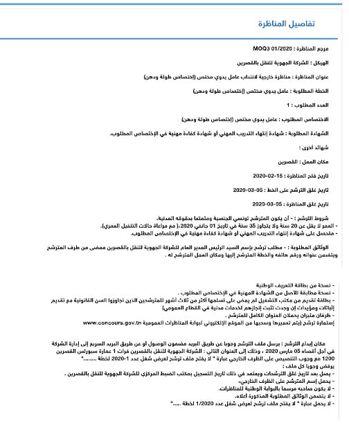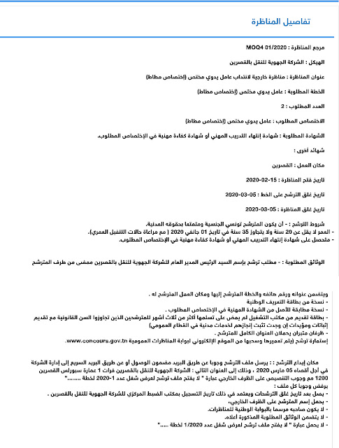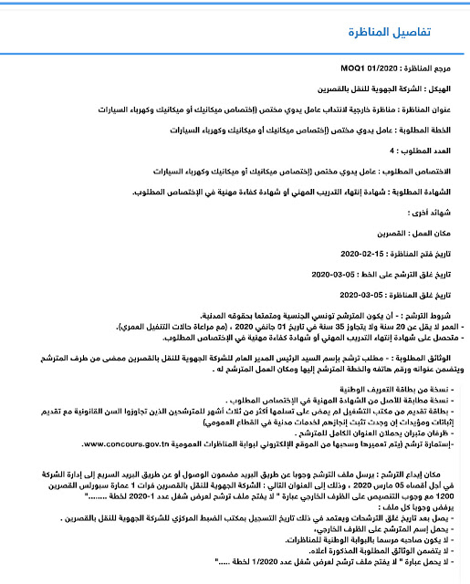 الشركة الجهوية للنقل بالقصرين تفتح مناظرة خارجية لانتداب أعوان في عديد الاختصاصات
