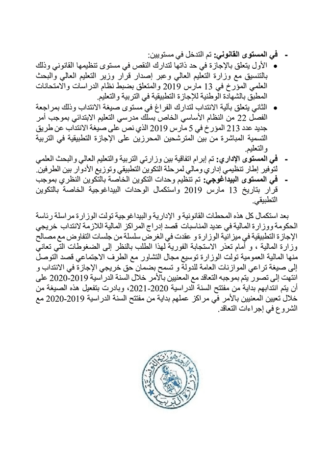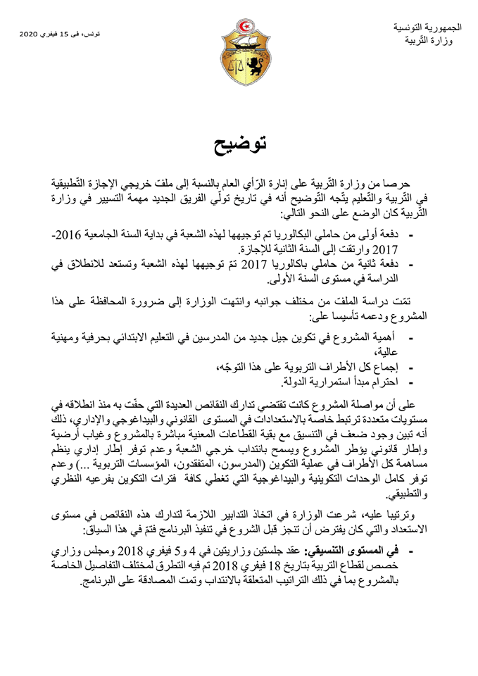 بلاغ وزارة التربية بخصوص ملف خريجي الاجازة التطبيقية في التربية و التعليم