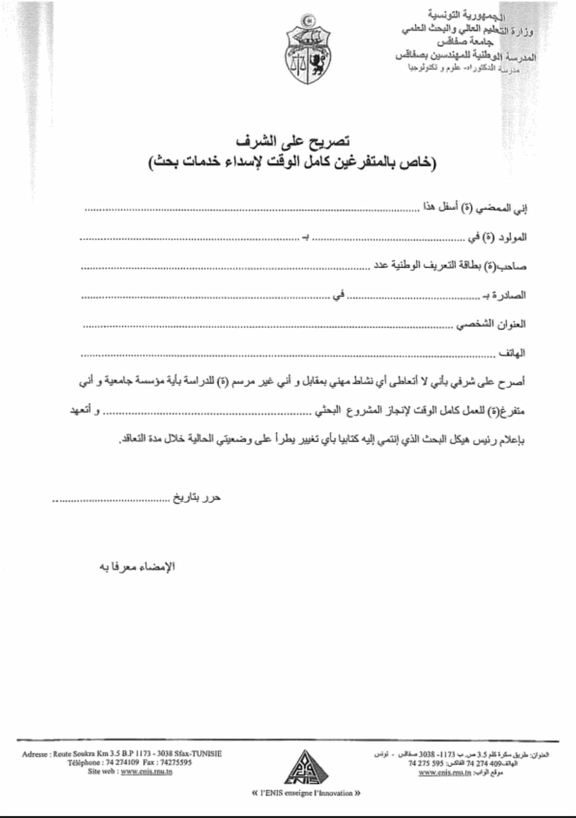 ENIS – Ecole Nationale D’ingenieurs de Sfax Tunisie