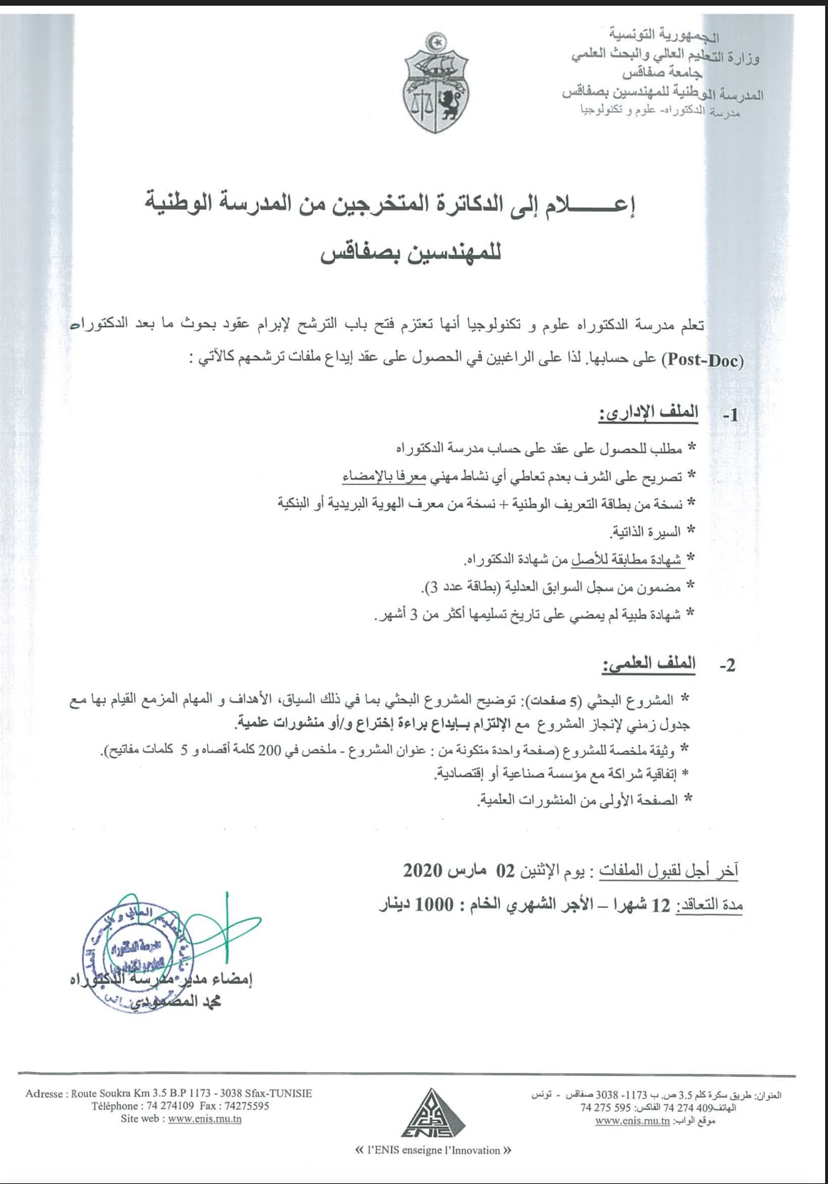 المدرسة الوطنية للمهندسين بصفاقس تنتدب – ENIS recrute