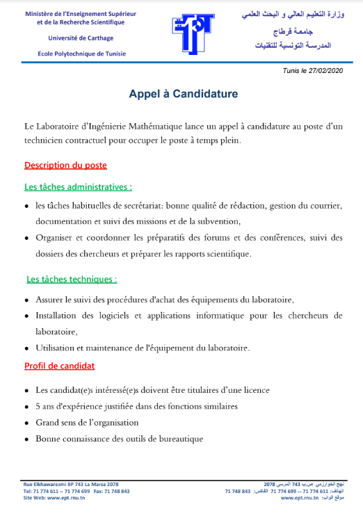 المدرسة التونسية للتقنيات تفتح باب الترشح للإنتداب