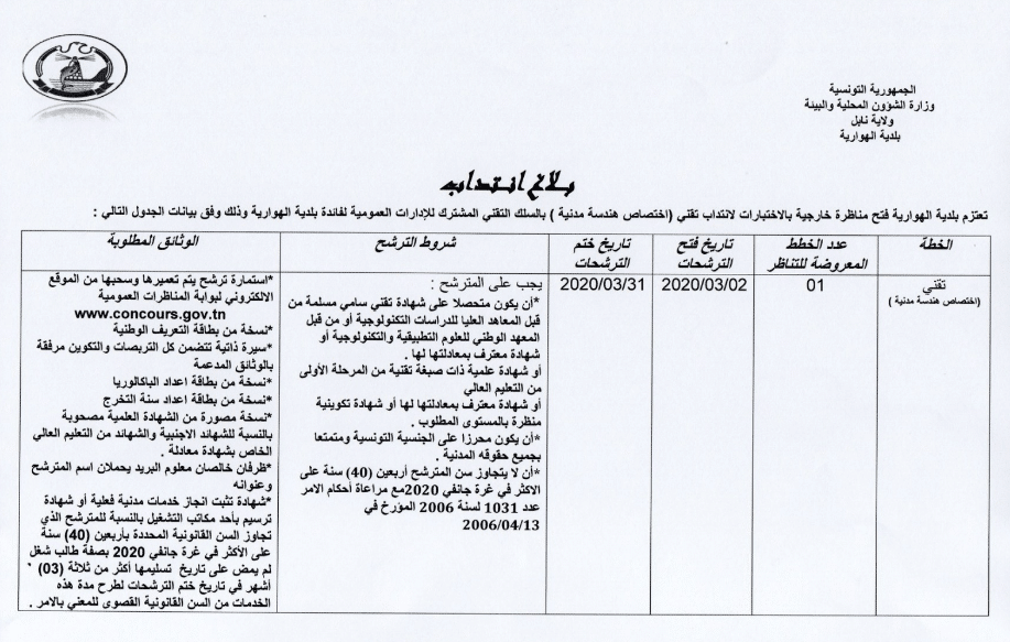 بلدية الهوارية تفتح مناظرة خارجية للإنتداب