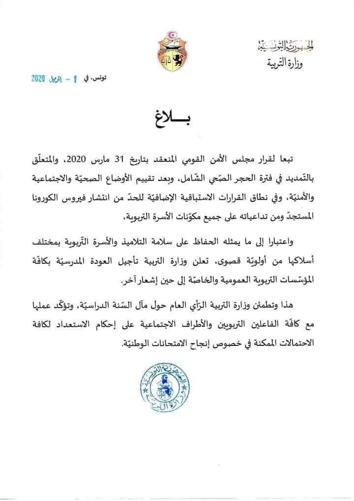 بلاغ هام من وزارة التربية