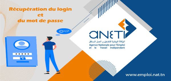 Pour vous aider à retrouver vos Login et Mot de passe afin d’accéder à votre espace membre du site Web de l’ANETI (www.emploi.nat.tn), nous vous invitons à cliquer, à partir de la Rubrique « Accès Membre » sur le lien suivant « Mot de passe oublié ». La page suivante s’affichera, remplissez le formulaire et validez (N’oubliez pas de cocher la case « Recevoir mes coordonnées par SMS ») :