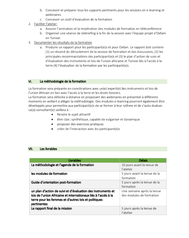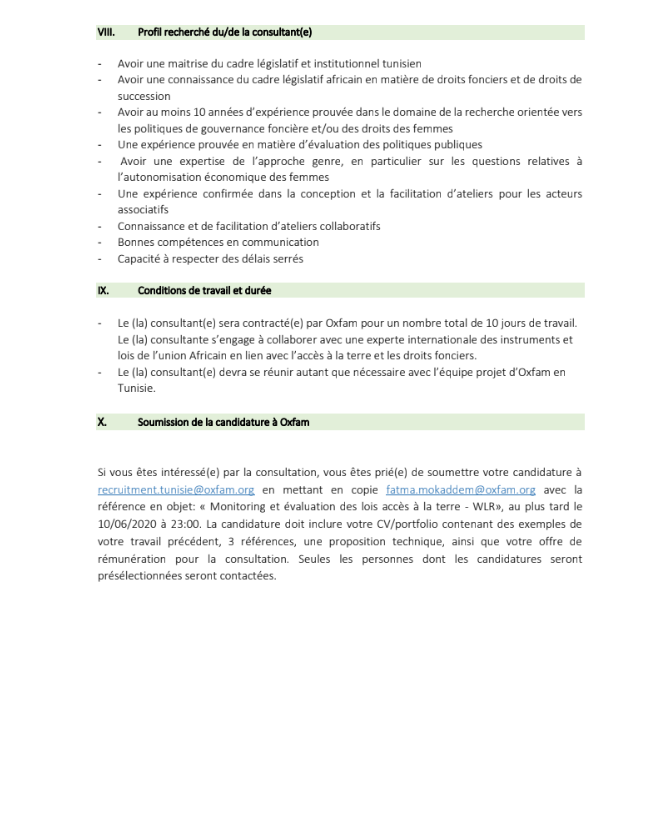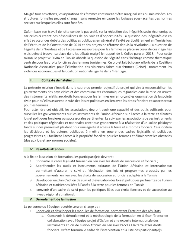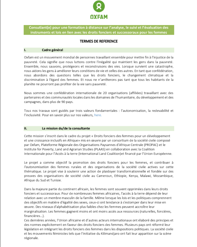 sur l’analyse, le suivi et l’évaluation des instruments et lois en lien avec les droits fonciers et successoraux pour les femmes.