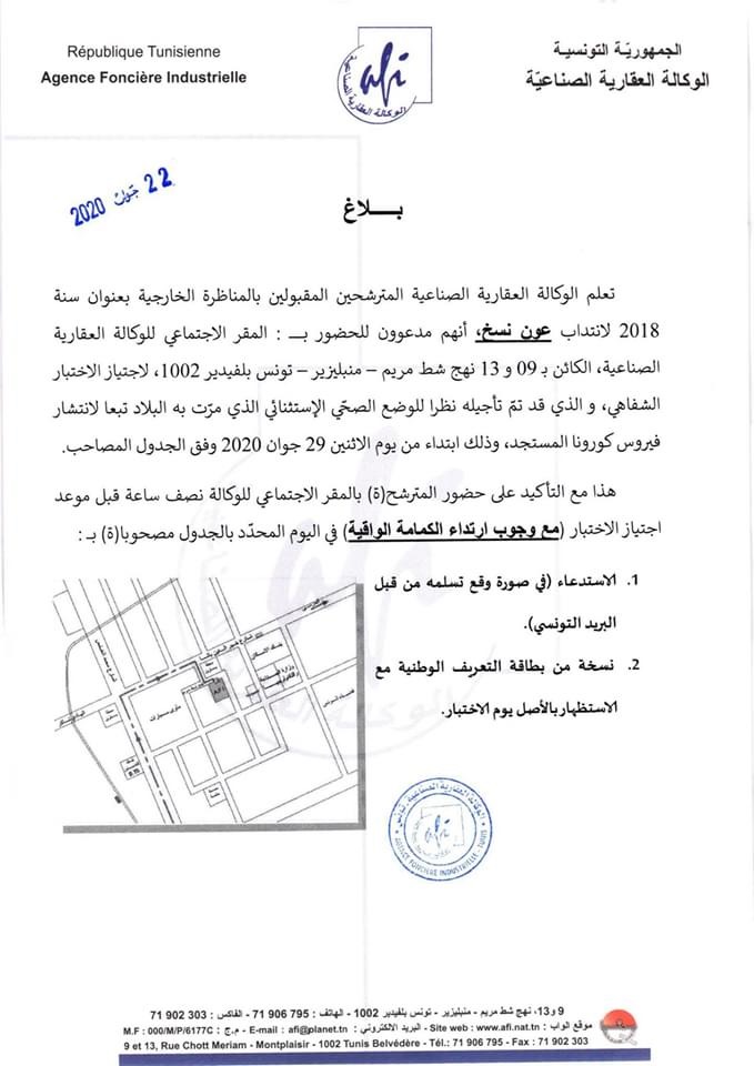 بلاغ خاص بمناظرة الوكالة العقارية الصناعية