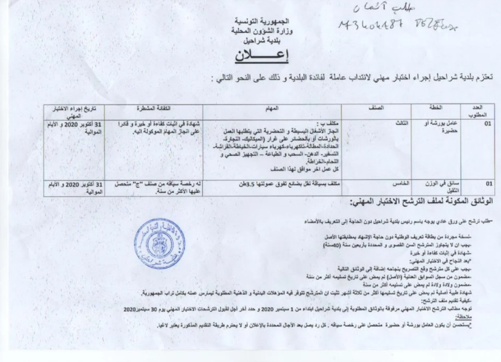 3 thoughts on “مناظرة بلدية شراحيل لإنتداب عديد الأعوان”