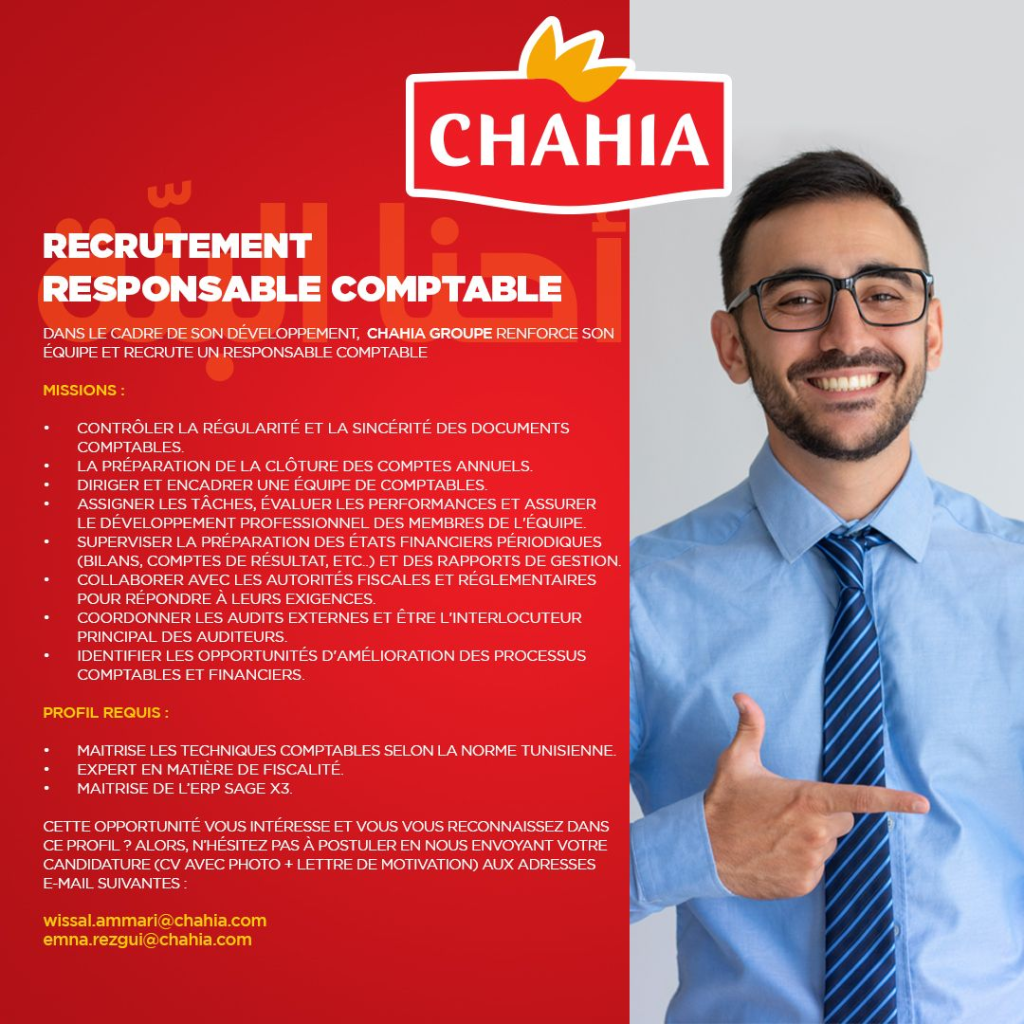 Dans le cadre de son développement, CHAHIA groupe renforce son équipe et recrute un responsable comptable.